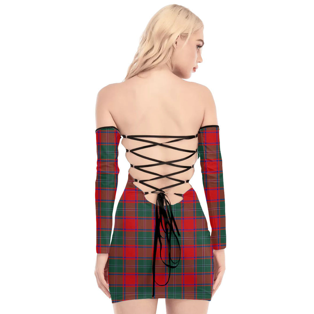 MacPhail Tartan Plaid Tartan Plaid Off-Shoulder Back Lace-Up Dress