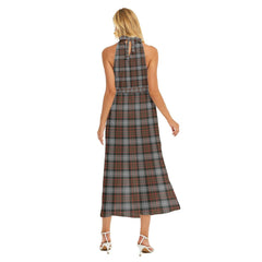 MacRae Hunting Weathered Tartan Crest Wrap Hem Belted Halter Dress