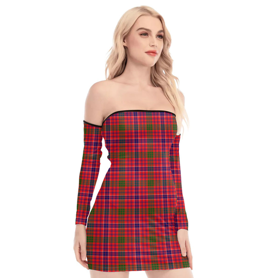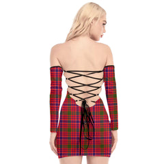 MacRae Modern Tartan Plaid Off-Shoulder Back Lace-Up Dress