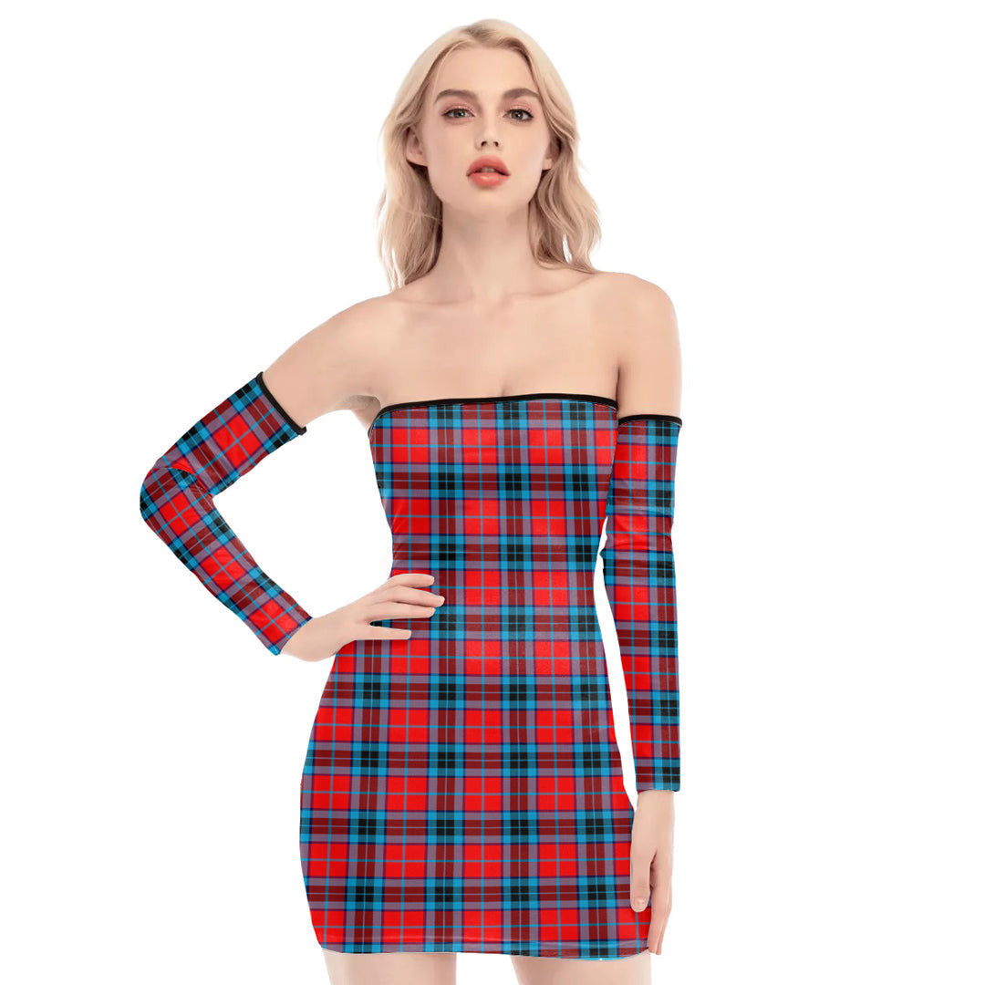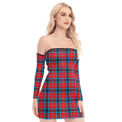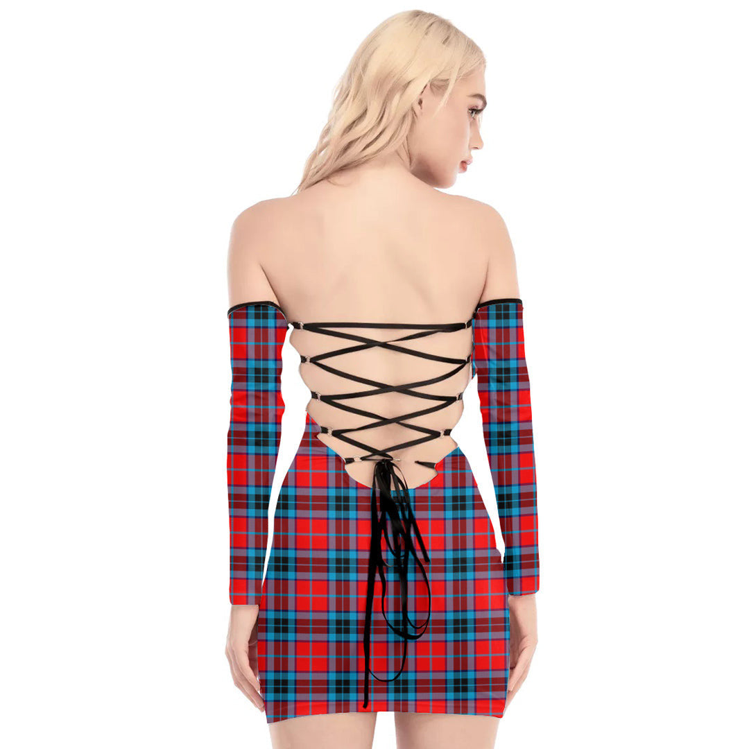 MacTavish Modern Tartan Plaid Off-Shoulder Back Lace-Up Dress