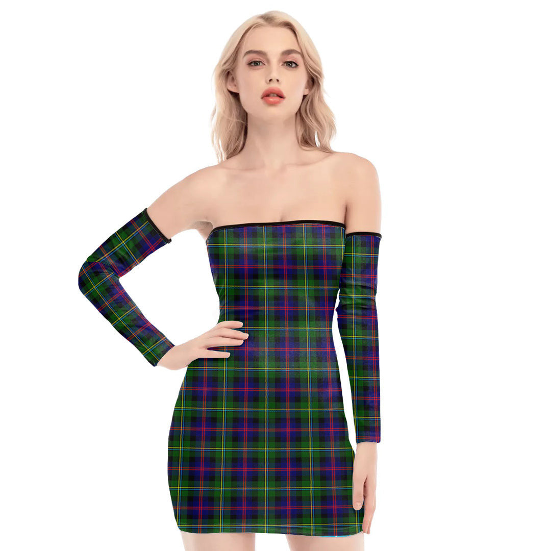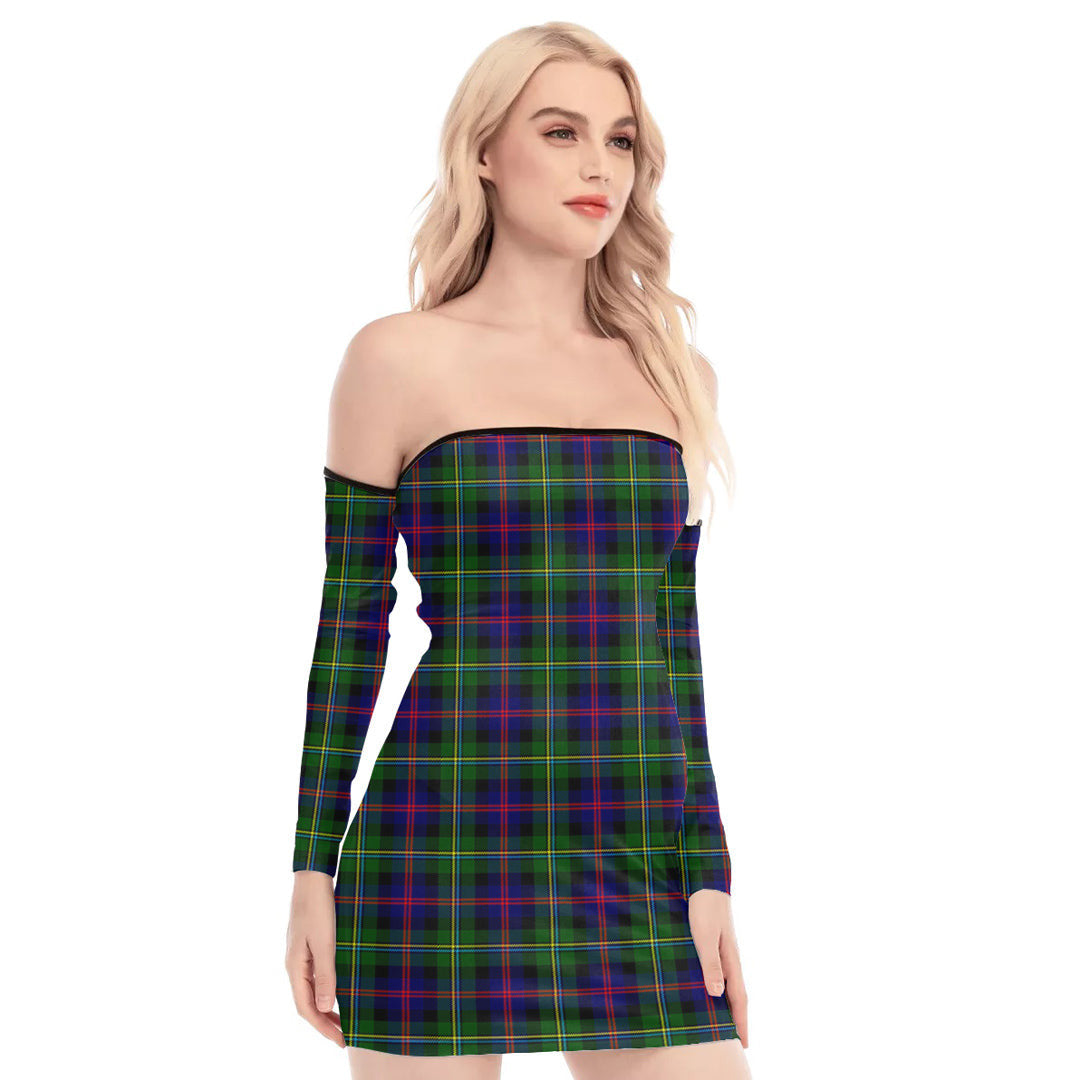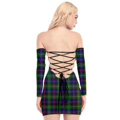 Malcolm Modern Tartan Plaid Off-Shoulder Back Lace-Up Dress