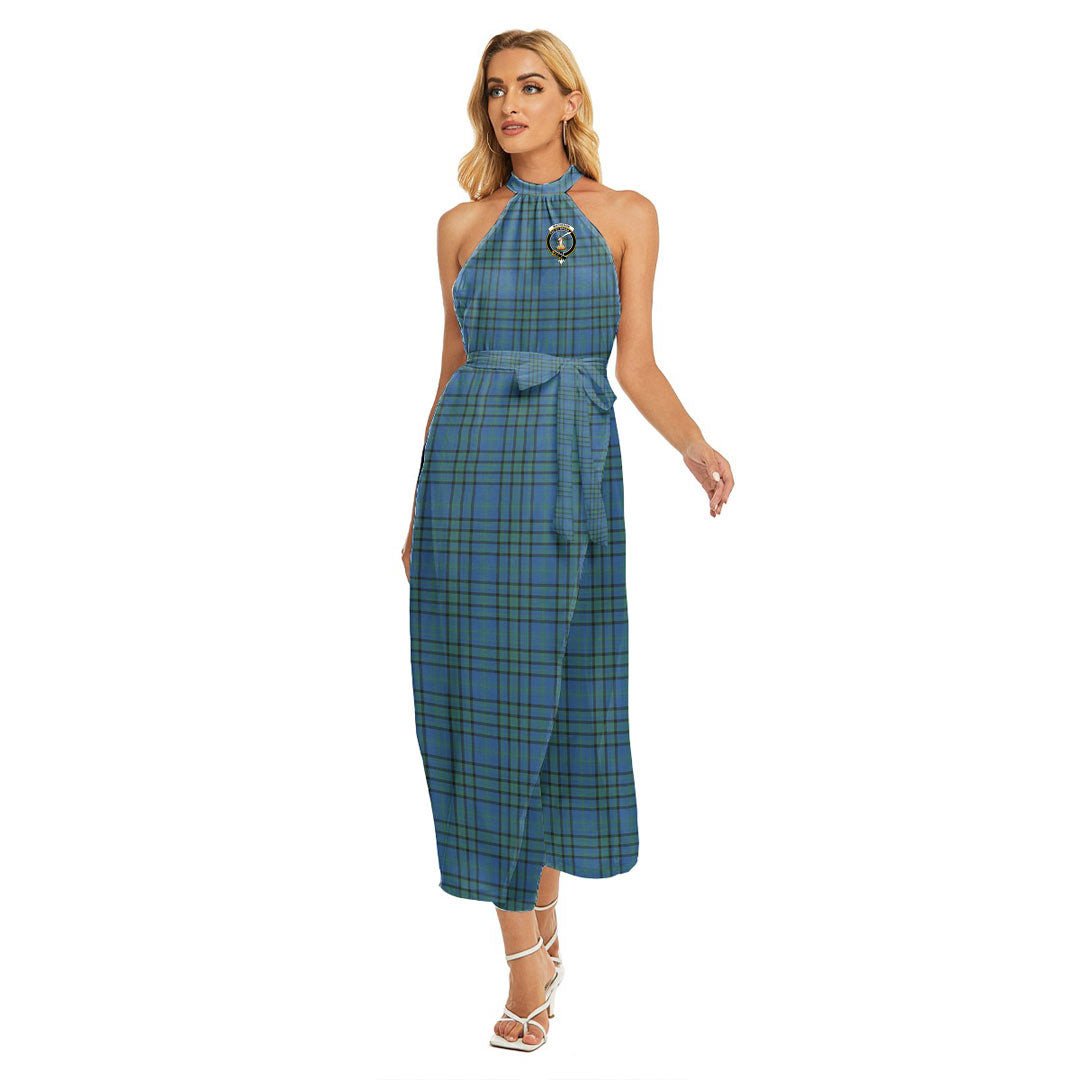 Matheson Hunting Ancient Tartan Crest Wrap Hem Belted Halter Dress