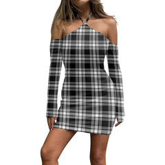 Menzies Black White Modern Tartan Plaid Halter Lace-up Dress