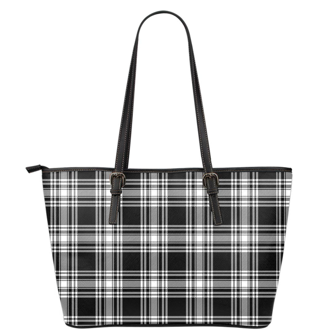 Menzies Black & White Modern Tartan Plaid Leather Tote