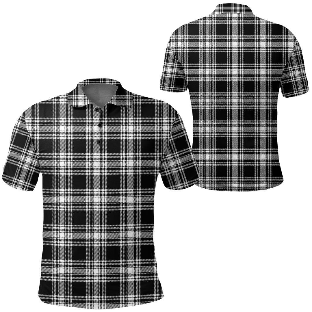 Menzies Black & White Modern Tartan Plaid Polo Shirt