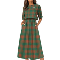 Menzies Green Ancient Tartan Crest Women's Elastic Waist Dress