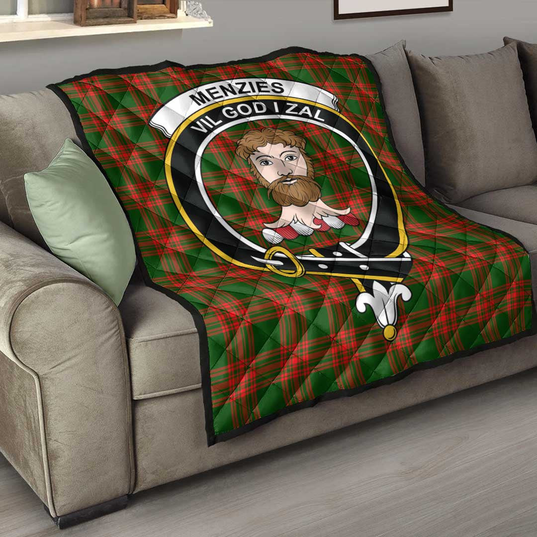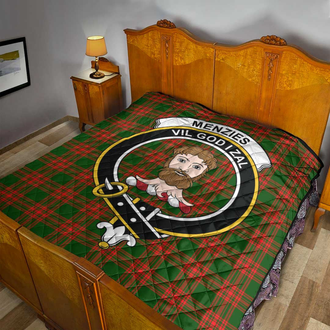 Menzies Green Modern Tartan Crest Quilt