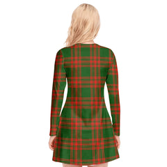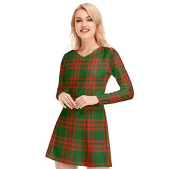 Menzies Green Modern Tartan Plaid V-neck Long Sleeve Dress