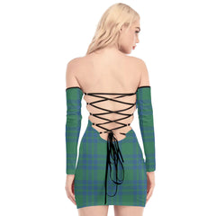 Montgomery Ancient Tartan Plaid Off-Shoulder Back Lace-Up Dress