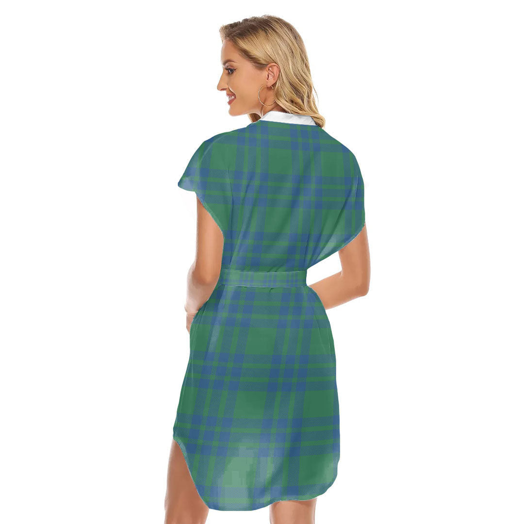 Montgomery Ancient Tartan Plaid Stand-up Collar Casual Dress With Belt