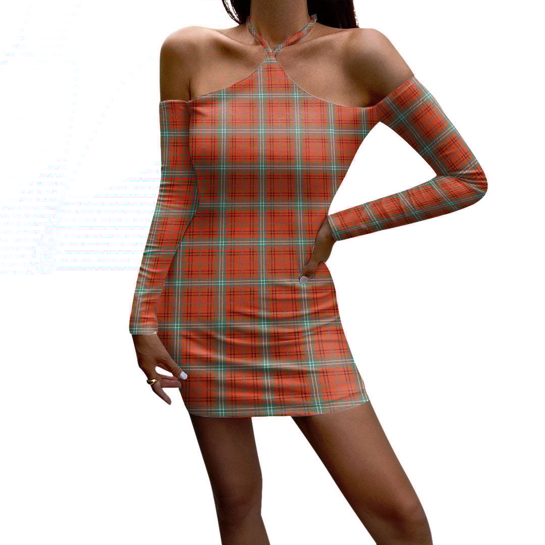 Morrison Red Ancient Tartan Plaid Halter Lace-up Dress