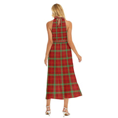 Morrison Red Modern Tartan Plaid Wrap Hem Belted Halter Dress
