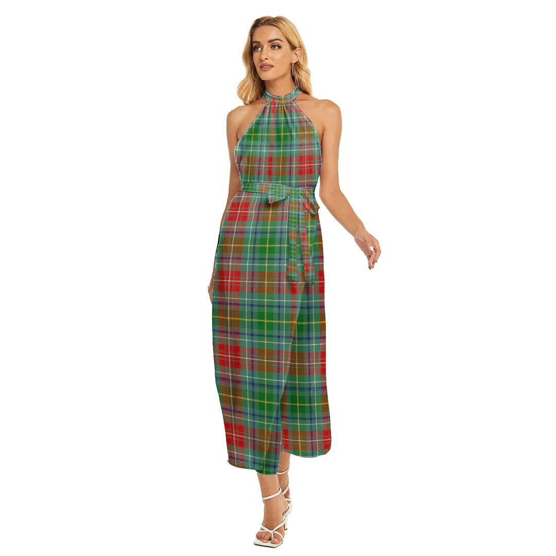 Muirhead Tartan Plaid Wrap Hem Belted Halter Dress