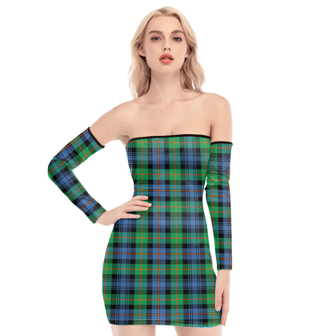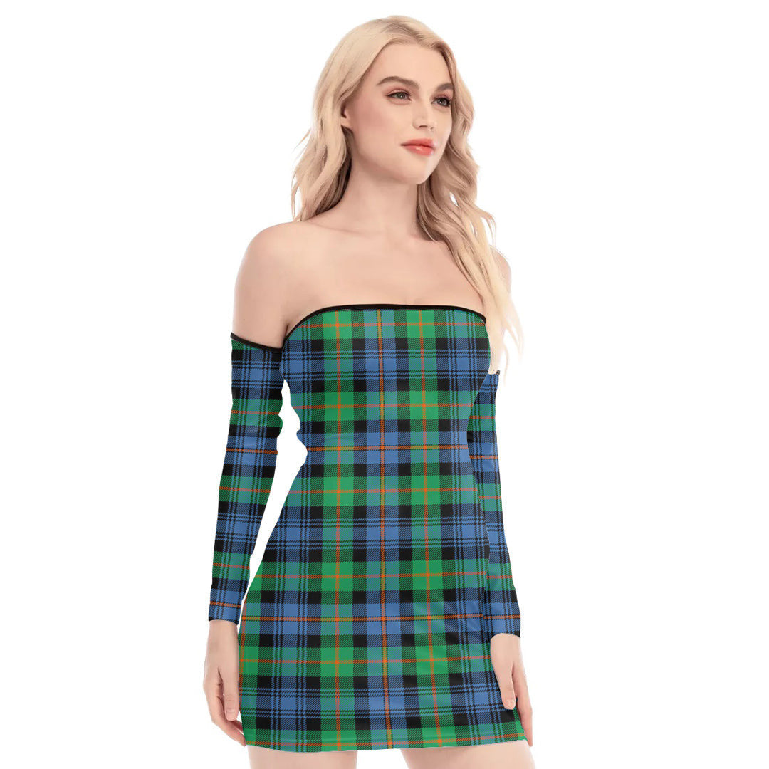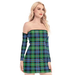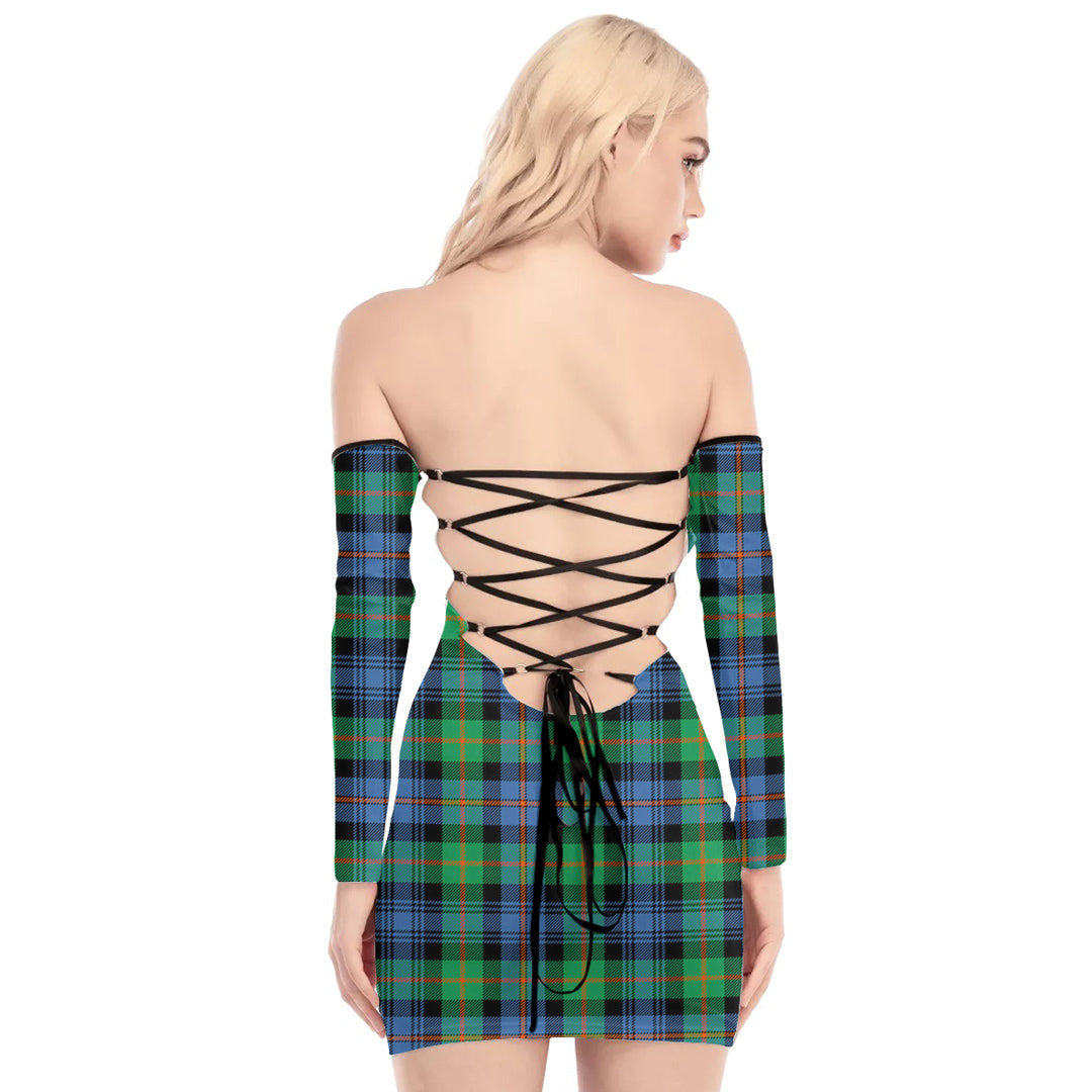 Murray of Atholl Ancient Tartan Plaid Off-Shoulder Back Lace-Up Dress