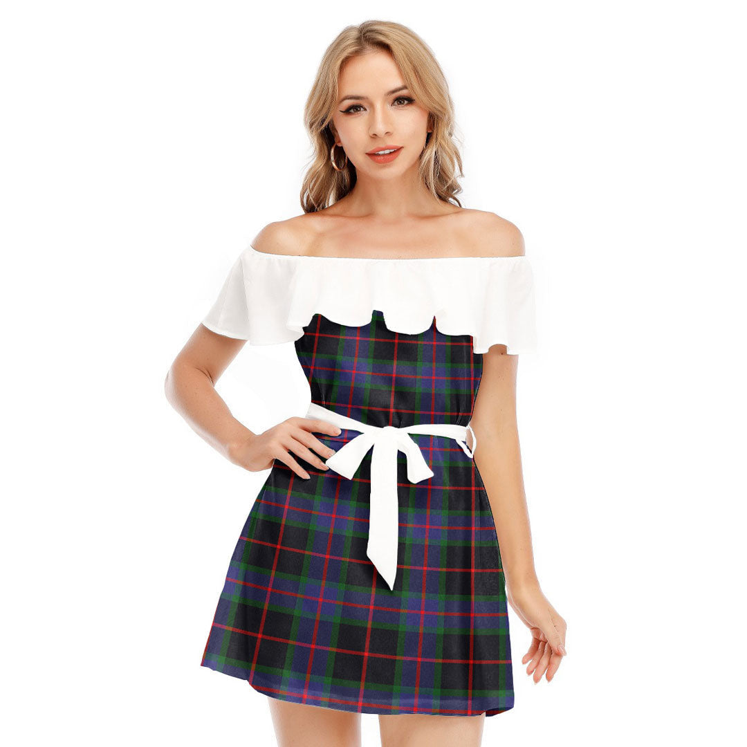 Nairn Tartan Plaid Off-shoulder Dress With Ruffle