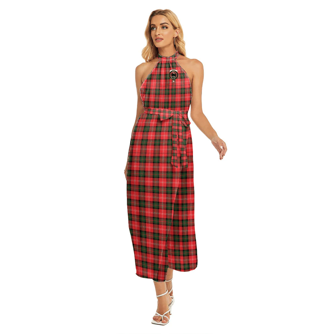 Nesbitt Modern Tartan Crest Wrap Hem Belted Halter Dress