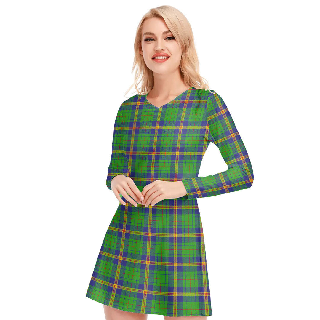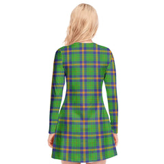 New Mexico Tartan Plaid V-neck Long Sleeve Dress