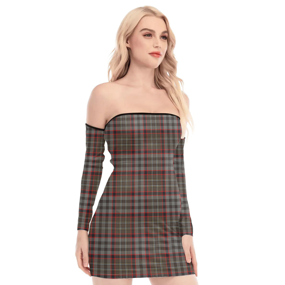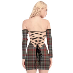 Nicolson Hunting Weathered Tartan Plaid Off-Shoulder Back Lace-Up Dress