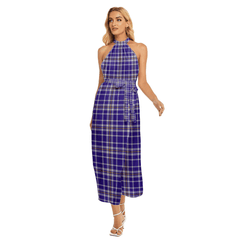 Ochterlony Tartan Plaid Wrap Hem Belted Halter Dress