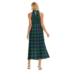 Oliphant Modern Tartan Crest Wrap Hem Belted Halter Dress