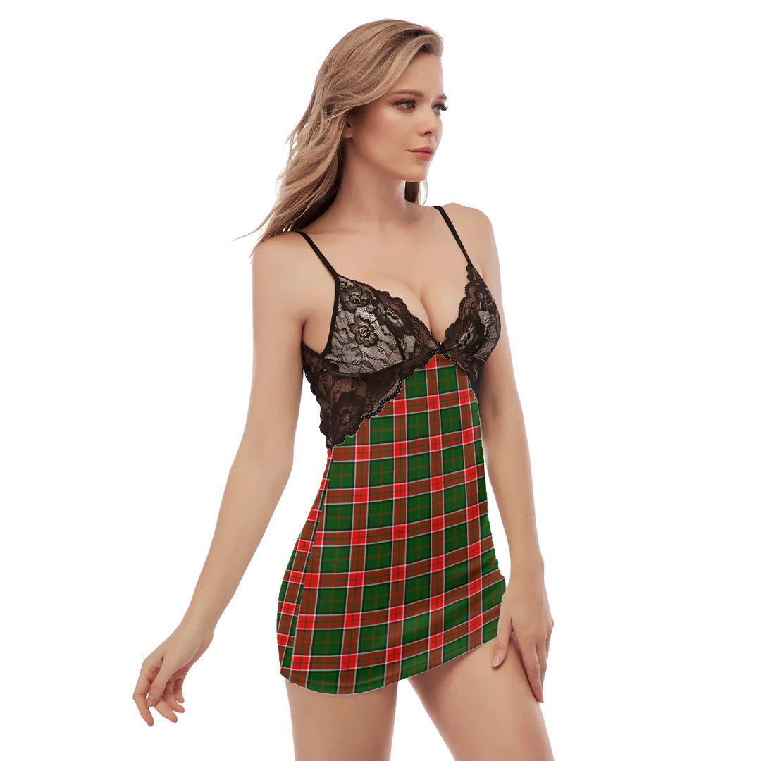 Pollock Modern Tartan Plaid Back Straps Cami Dress With Lace