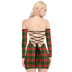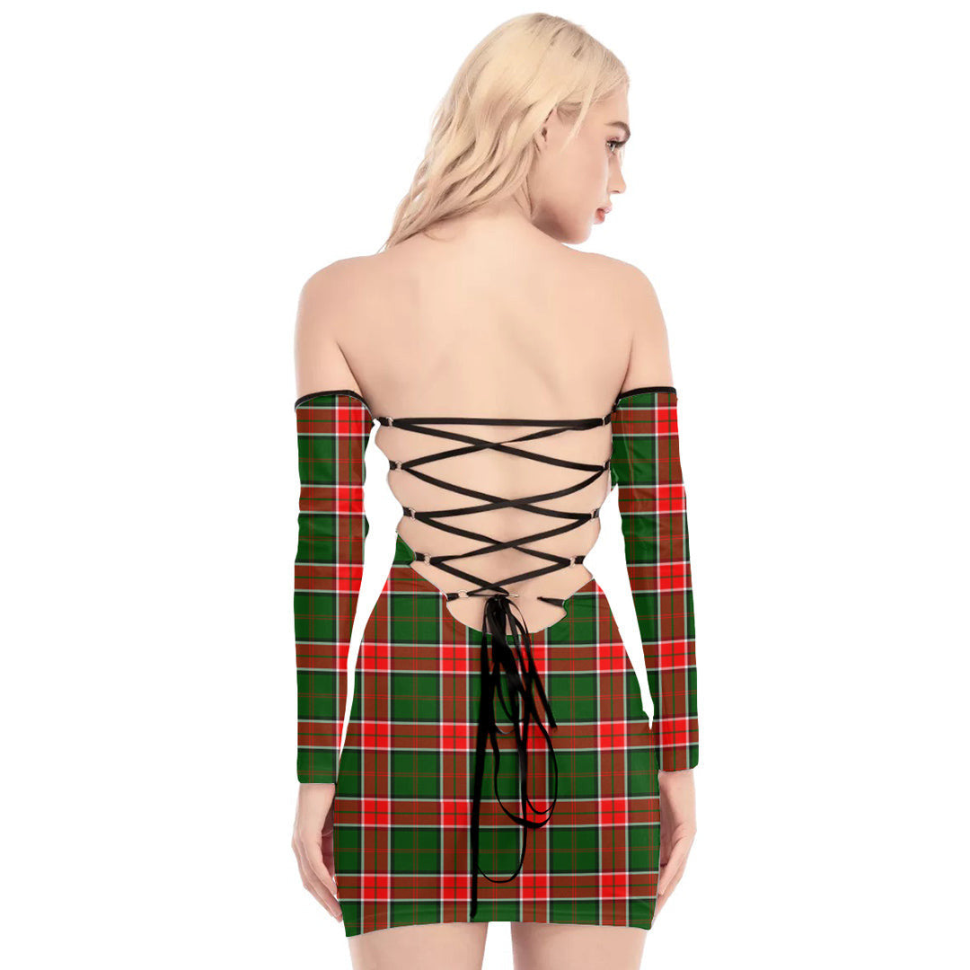 Pollock Modern Tartan Plaid Off-Shoulder Back Lace-Up Dress