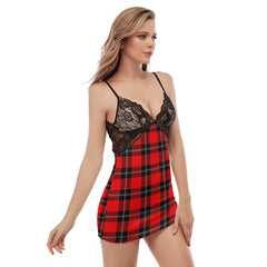 Ramsay Modern Tartan Plaid Back Straps Cami Dress With Lace