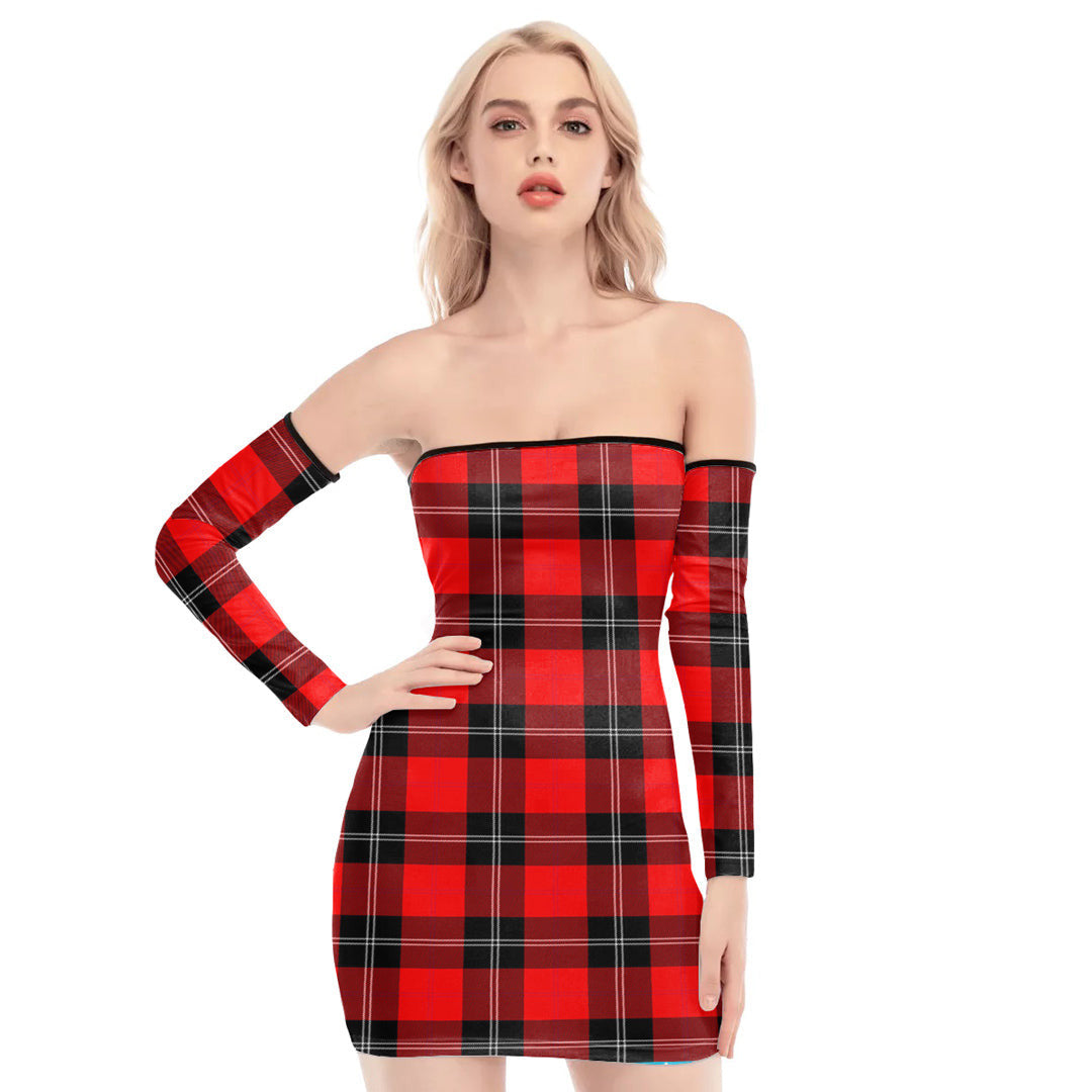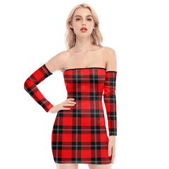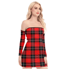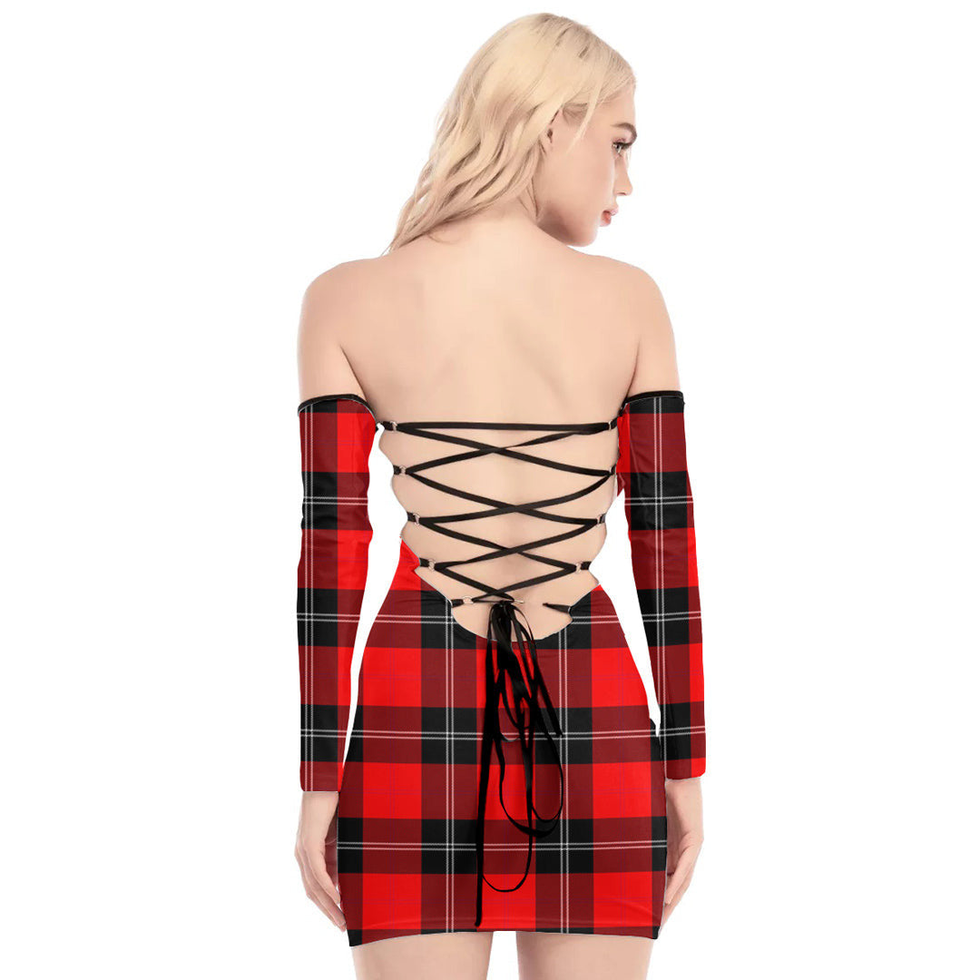 Ramsay Modern Tartan Plaid Off-Shoulder Back Lace-Up Dress