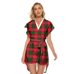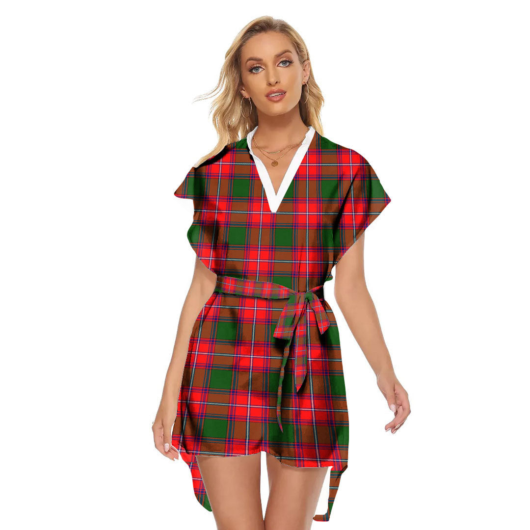 Rattray Modern Tartan Plaid Stand-up Collar Casual Dress With Belt
