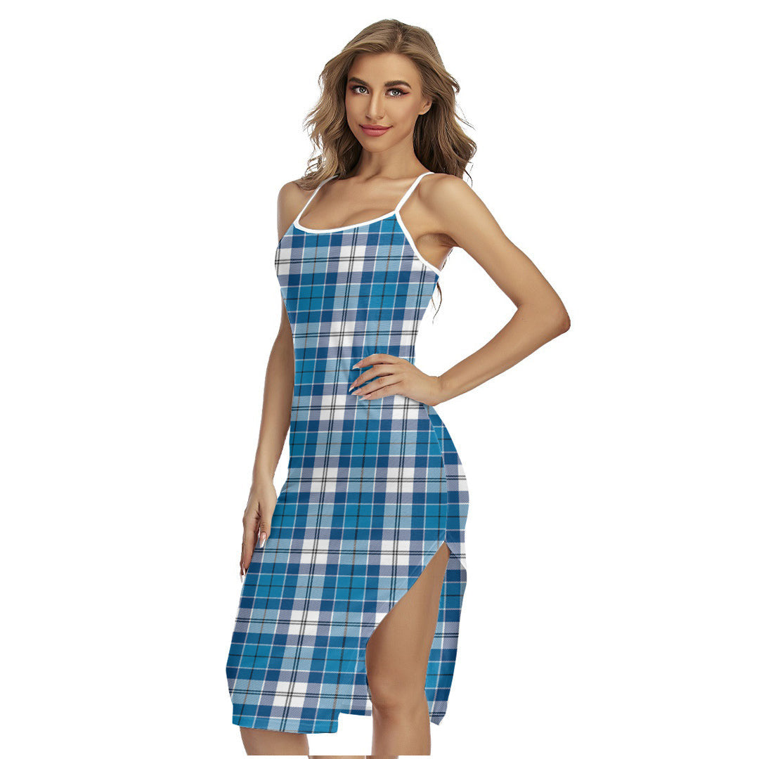 Sexy knitted suspender skirt, side slit design can properly show the shape of the legs, the back suspenders are crossed, and the beautiful back is outlined