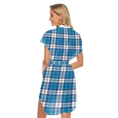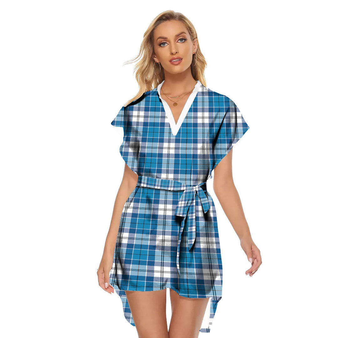 Roberton Tartan Plaid Stand-up Collar Casual Dress With Belt