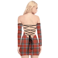 Robertson Weathered Tartan Plaid Off-Shoulder Back Lace-Up Dress