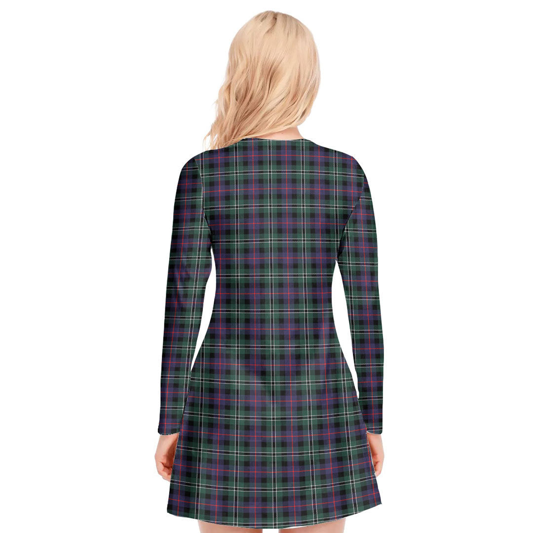 Rose Hunting Modern Tartan Plaid V-neck Long Sleeve Dress