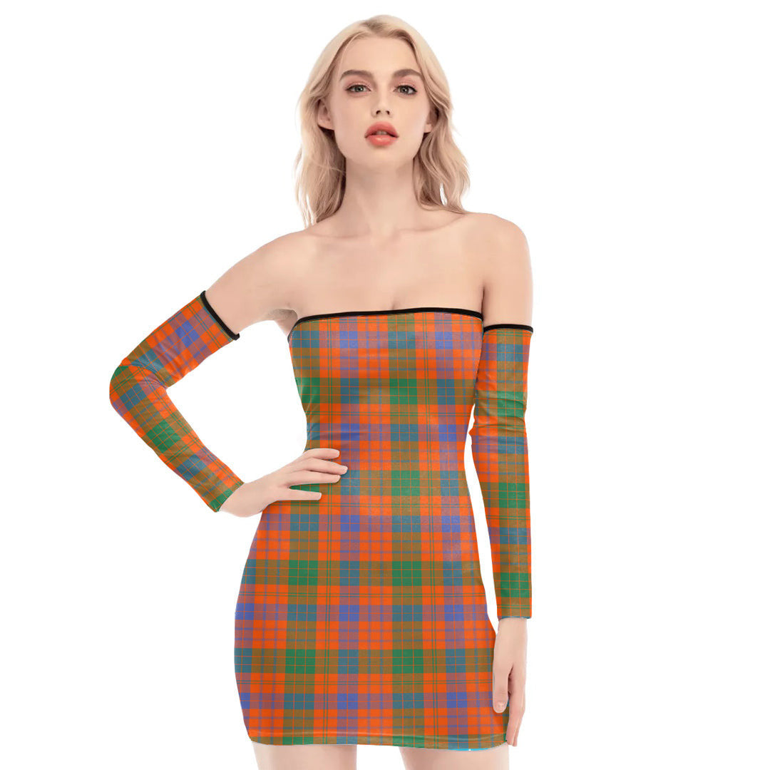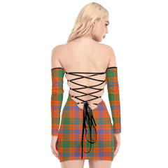 Ross Ancient Tartan Plaid Off-Shoulder Back Lace-Up Dress