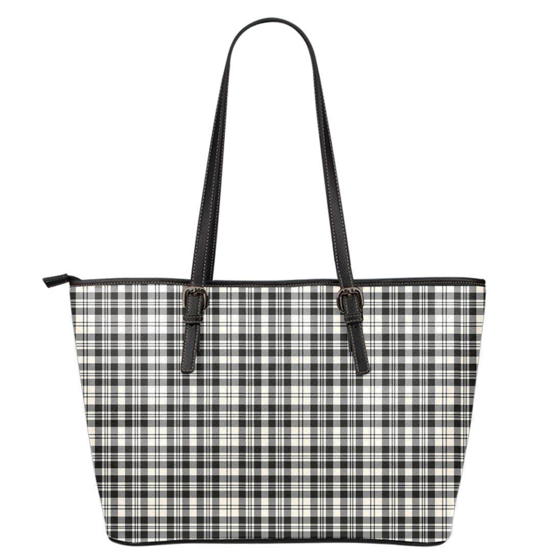 Scott Black & White Ancient Tartan Plaid Leather Tote