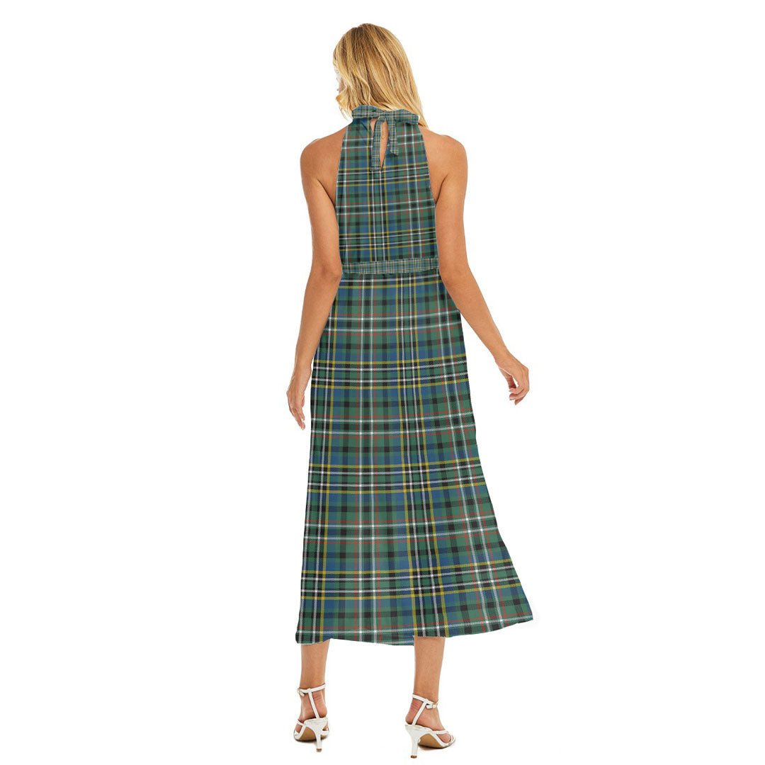 SCOTT GREEN ANCIENT Tartan Plaid Wrap Hem Belted Halter Dress