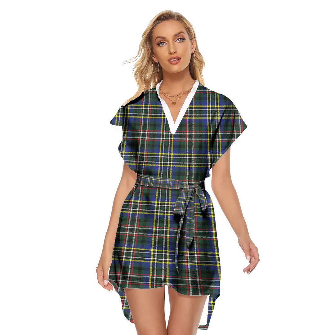 SCOTT GREEN MODERN Tartan Plaid Stand-up Collar Casual Dress With Belt