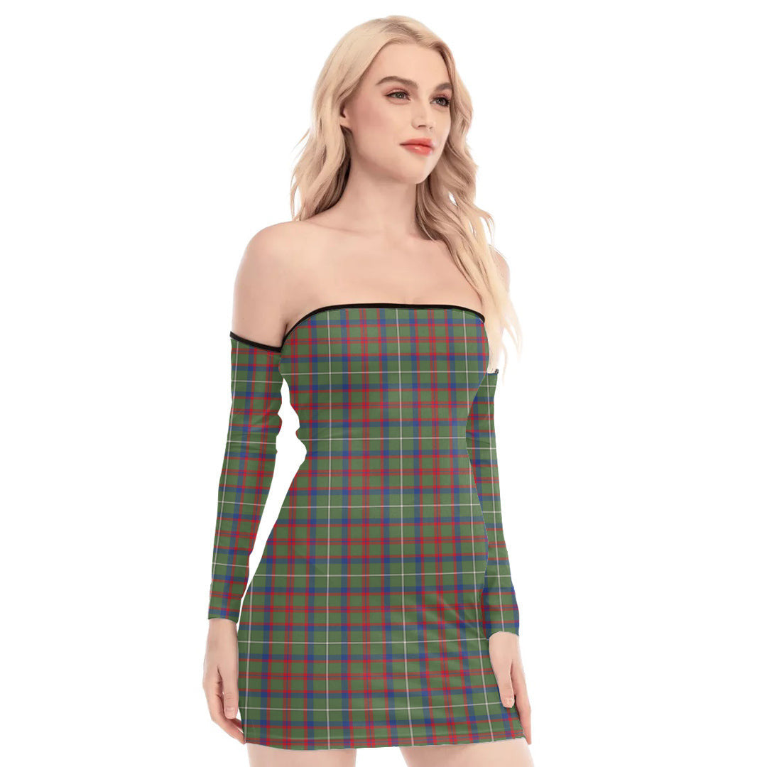 Shaw Green Modern Tartan Plaid Off-Shoulder Back Lace-Up Dress
