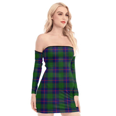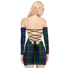 Shaw Modern Tartan Plaid Off-Shoulder Back Lace-Up Dress