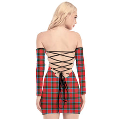 Sinclair Modern Tartan Plaid Off-Shoulder Back Lace-Up Dress