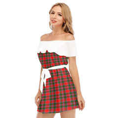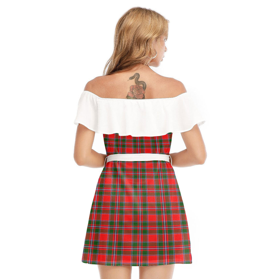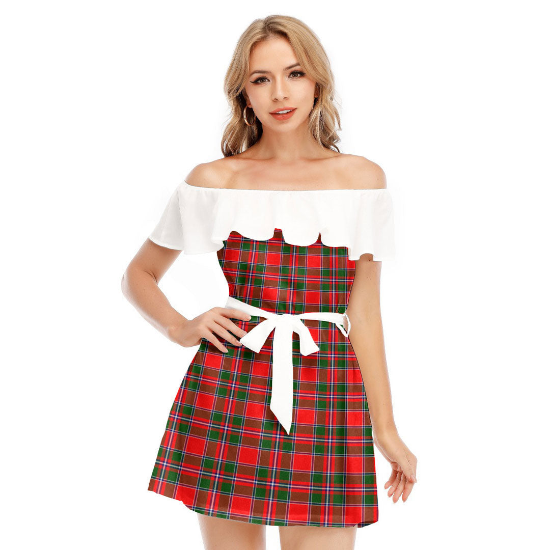 Spens Modern Tartan Plaid Off-shoulder Dress With Ruffle