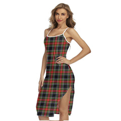 Stewart Black Tartan Plaid Back Cross Cami Dress