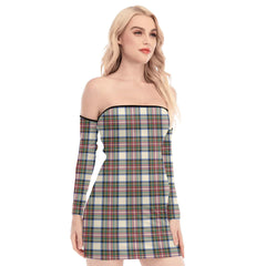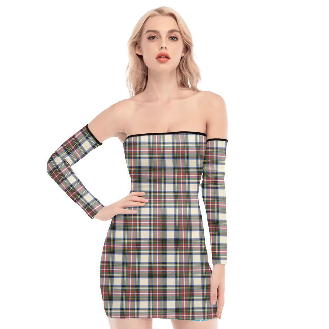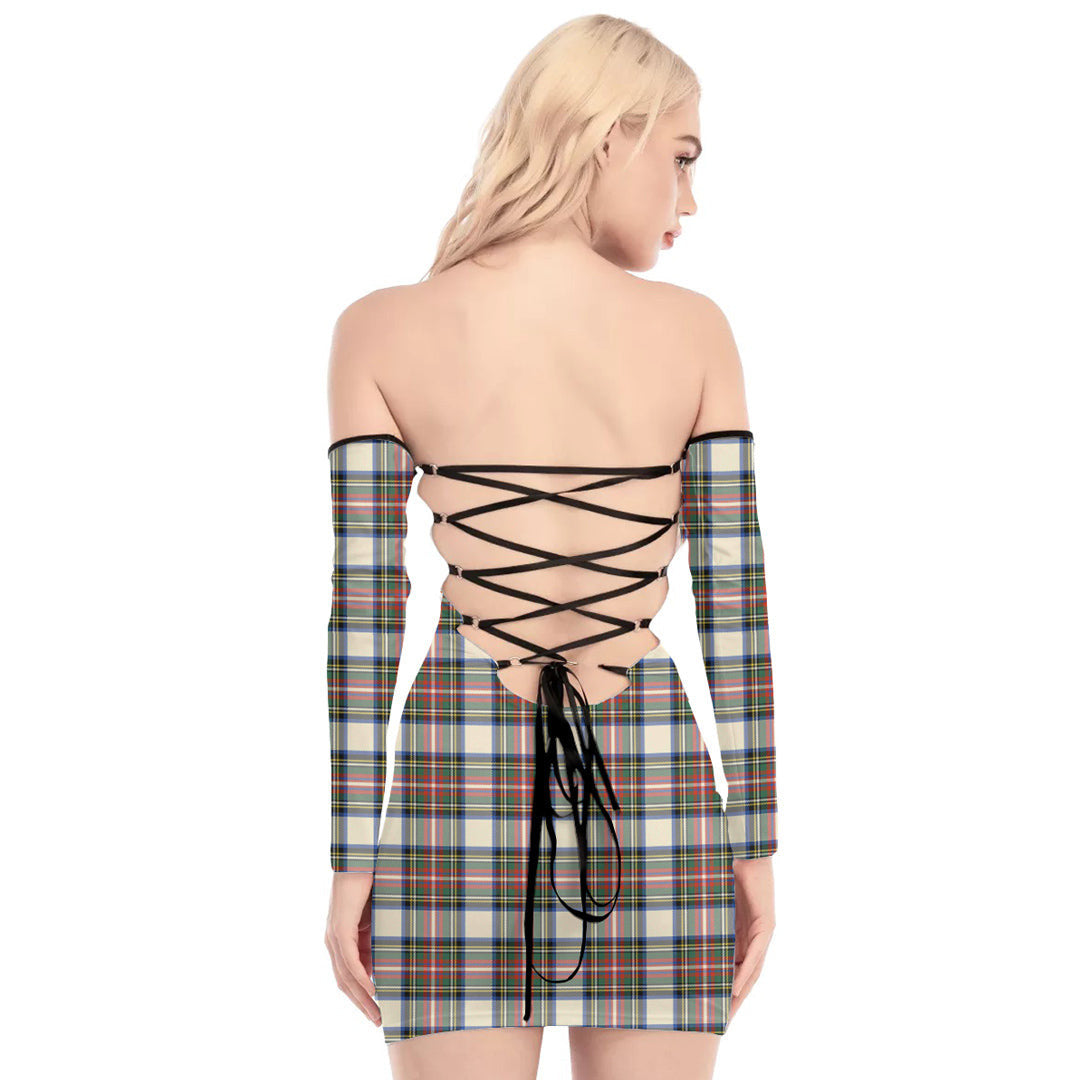 Stewart Dress Ancient Tartan Plaid Off-Shoulder Back Lace-Up Dress