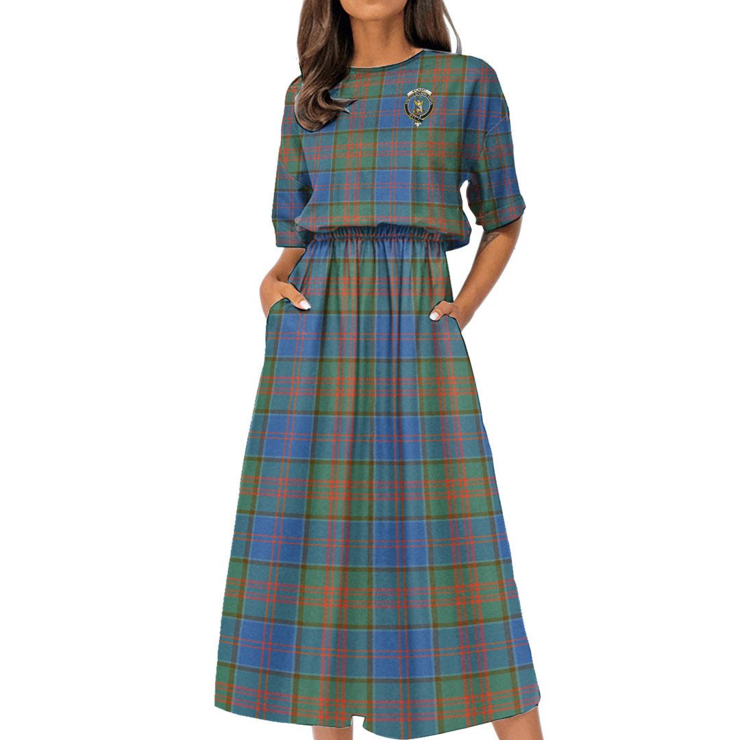 Stewart of Appin Hunting Ancient Tartan Crest Women's Elastic Waist Dress