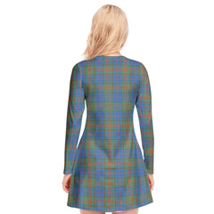 Stewart of Appin Hunting Ancient Tartan Plaid V-neck Long Sleeve Dress