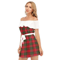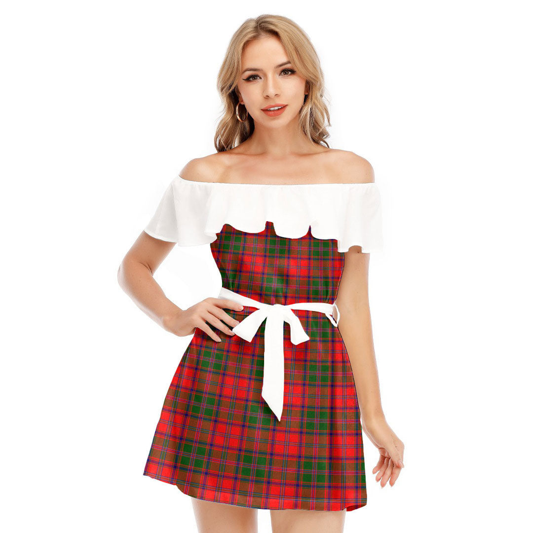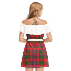 Stewart of Appin Modern Tartan Plaid Off-shoulder Dress With Ruffle