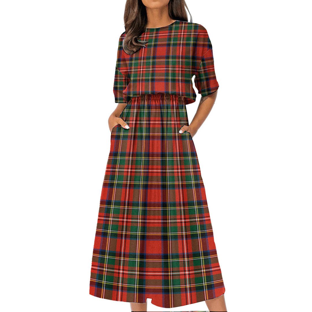 Stewart Royal Modern Tartan Plaid Women's Elastic Waist Dress