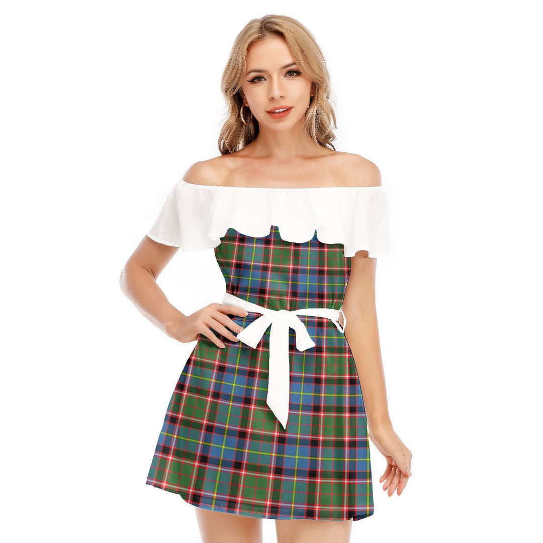 Stirling Bannockburn District Tartan Plaid Off-shoulder Dress With Ruffle