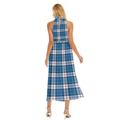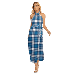 Strathclyde District Tartan Plaid Wrap Hem Belted Halter Dress