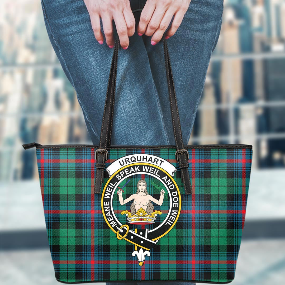 Urquhart Broad Red Ancient Tartan Crest Leather Tote